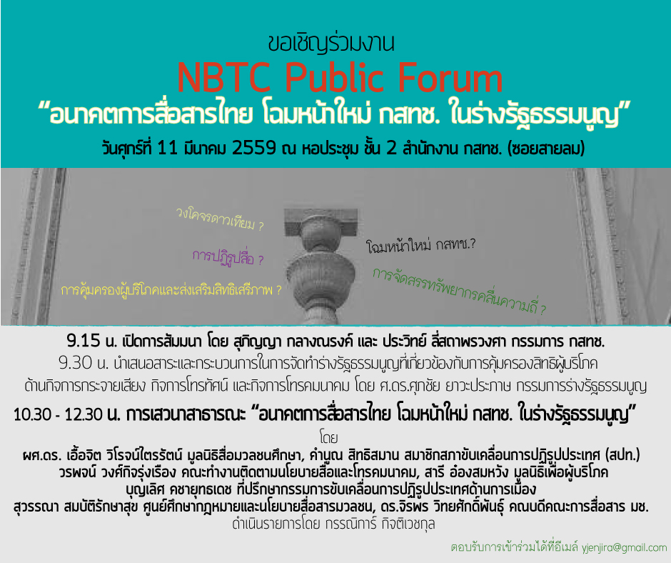 ขอเชิญร่วมงาน NBTC Public Forum ครั้งที่ ๑/๒๕๕๙